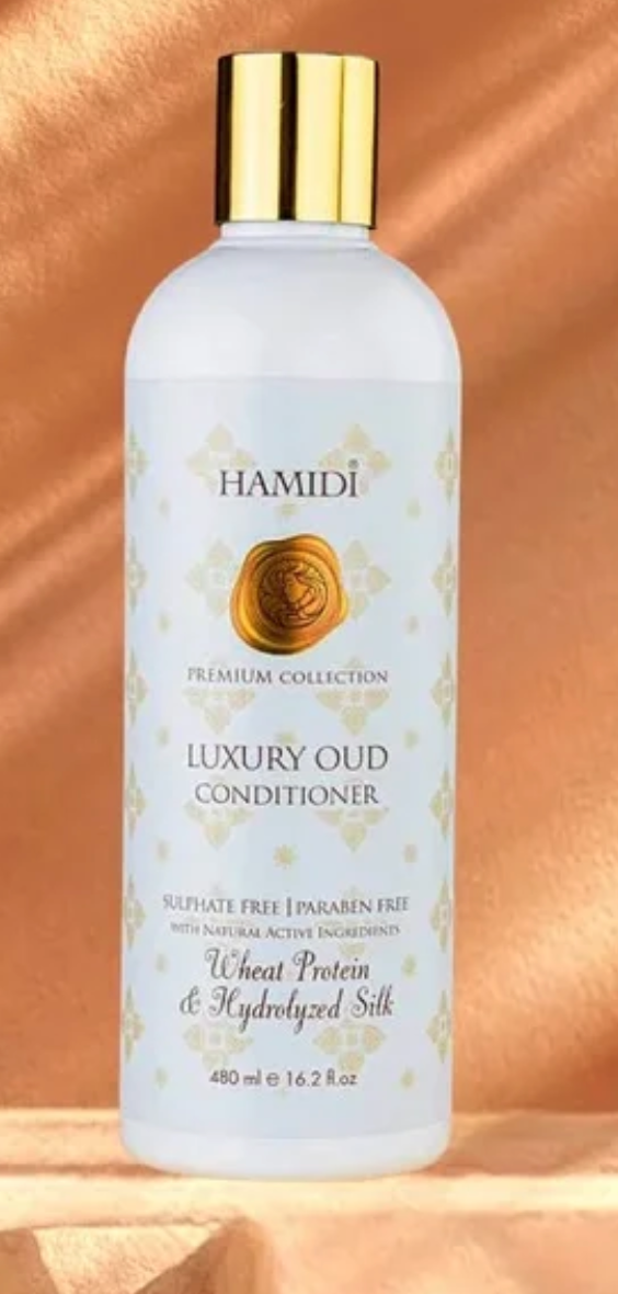 - Luxury Oud Conditioner- Wheat Protein Hydrolyzed Silk from Hamidi Premium Collection provides a dry scalp with rejuvenation leaving hair moisturized and glossy soft.